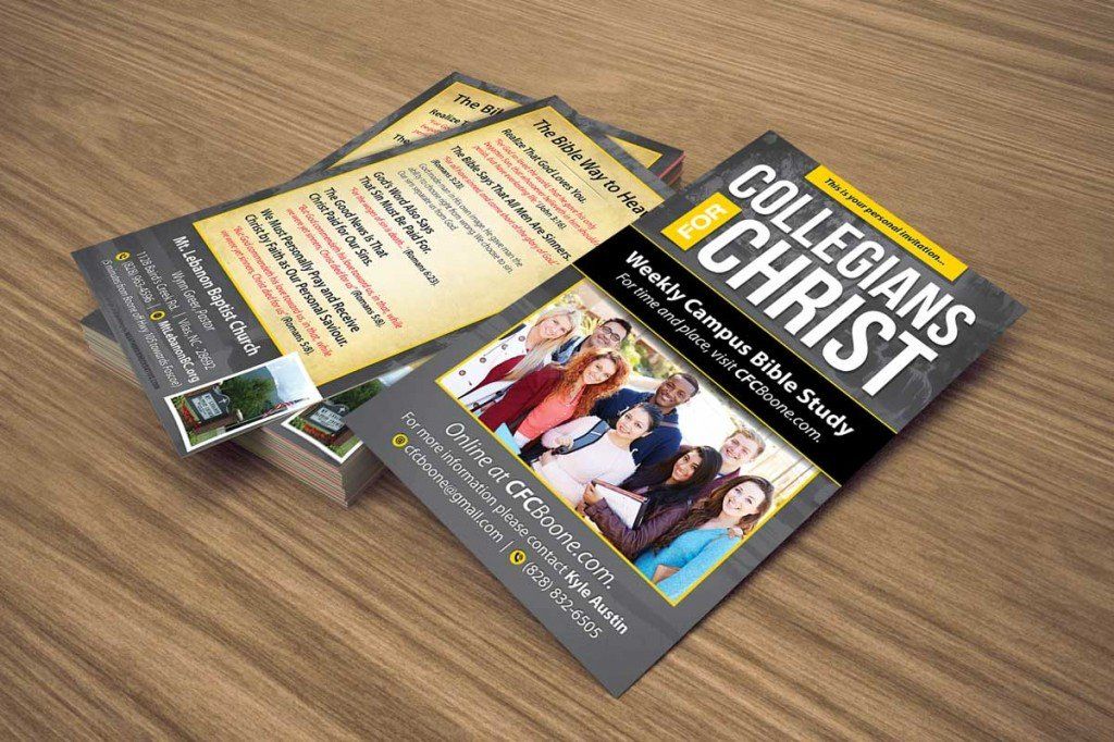 For those locations using the Collegians for Christ name, we offer the use of the logo and other outreach material that has been pre-designed. These can be customized with your information and school colors. We have added a sports schedule tract, table front banner, door hanger, 18×24 yard sign, posters, tent, shirts and more to the materials that are available. If you need something not listed yet just let us know and we will make it available. Official CFC locations can order any of these items by contacting us.
